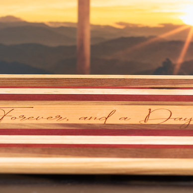 This charcuterie board is crafted from sustainably-sourced maple, walnut, purple heart and cherry wood, creating a unique and eye-catching serving tray. The wood is artfully hand-carved and joined to accentuate the natural beauty of the woods. This sophisticated serving tray is sure to impress any guest.