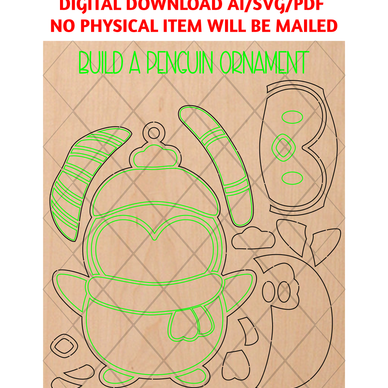 Pop Out Ornament Penguin Digital File, Build Your Own Christmas Ornament, Kids Craft, Christmas Ornament DIY, Laser File